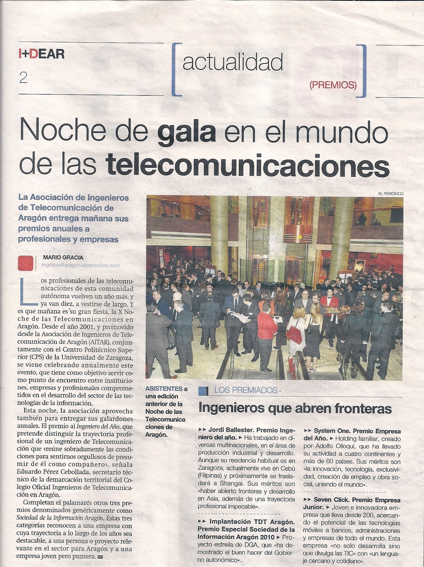 Premia una iniciativa empresarial que, llevando varios años de notable desarrollo, viene contribuyendo a realzar la presencia en Aragón del sector de las Nuevas Tecnologías.