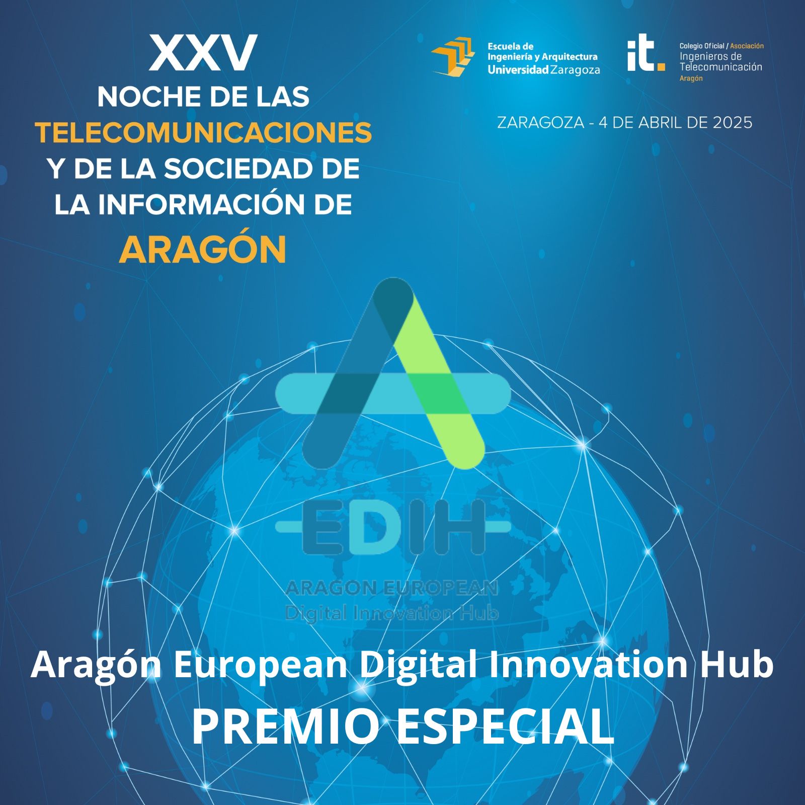 En la próxima XXV edición de la Noche de las Telecomunicaciones y la Sociedad de la Información, vamos a otorgar el Premio Especial al Aragón European Digital Innovation Hub (Aragón EDIH), un centro de competencias tecnológicas de referencia que ha demostrado un compromiso incansable con la digitalización y la innovación en nuestra comunidad.